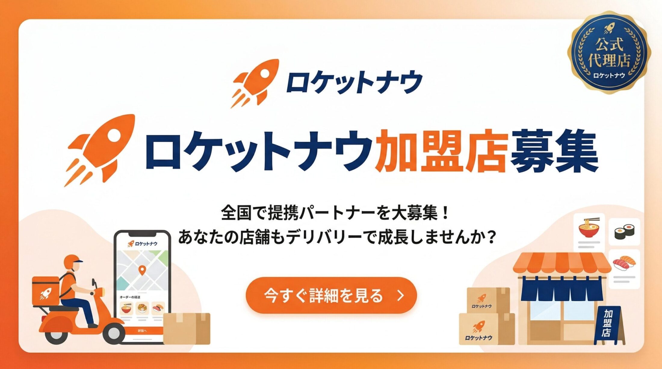 Rocket Nowは現在、主要都市から急速にエリアを拡大している成長フェーズ(東京都全域、神奈川、千葉、埼玉へも展開、加盟店は全国70,000店舗以上に。現在は札幌市、仙台市、名古屋市、静岡、大阪、京都市、兵庫、広島市、福岡市)